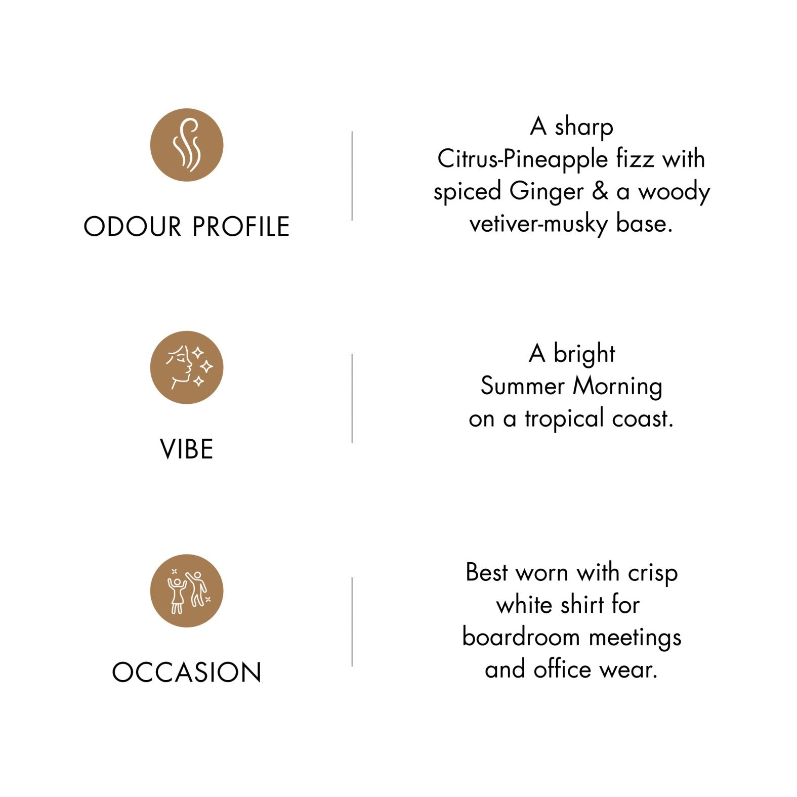 That's the thing about your signature, it's unique and unforgettable. Signature Scent is a vibrant pineapple fragrance with a punch of citruses, ambroxan, and spices, blended for the sophisticated men with a playful soul.